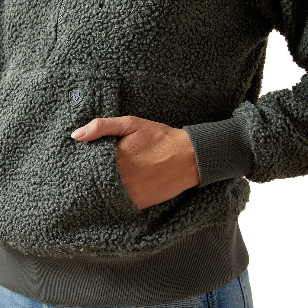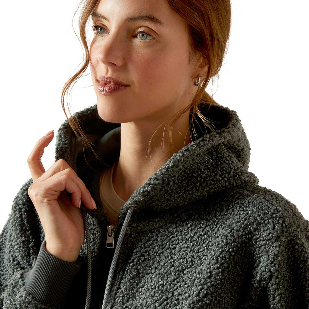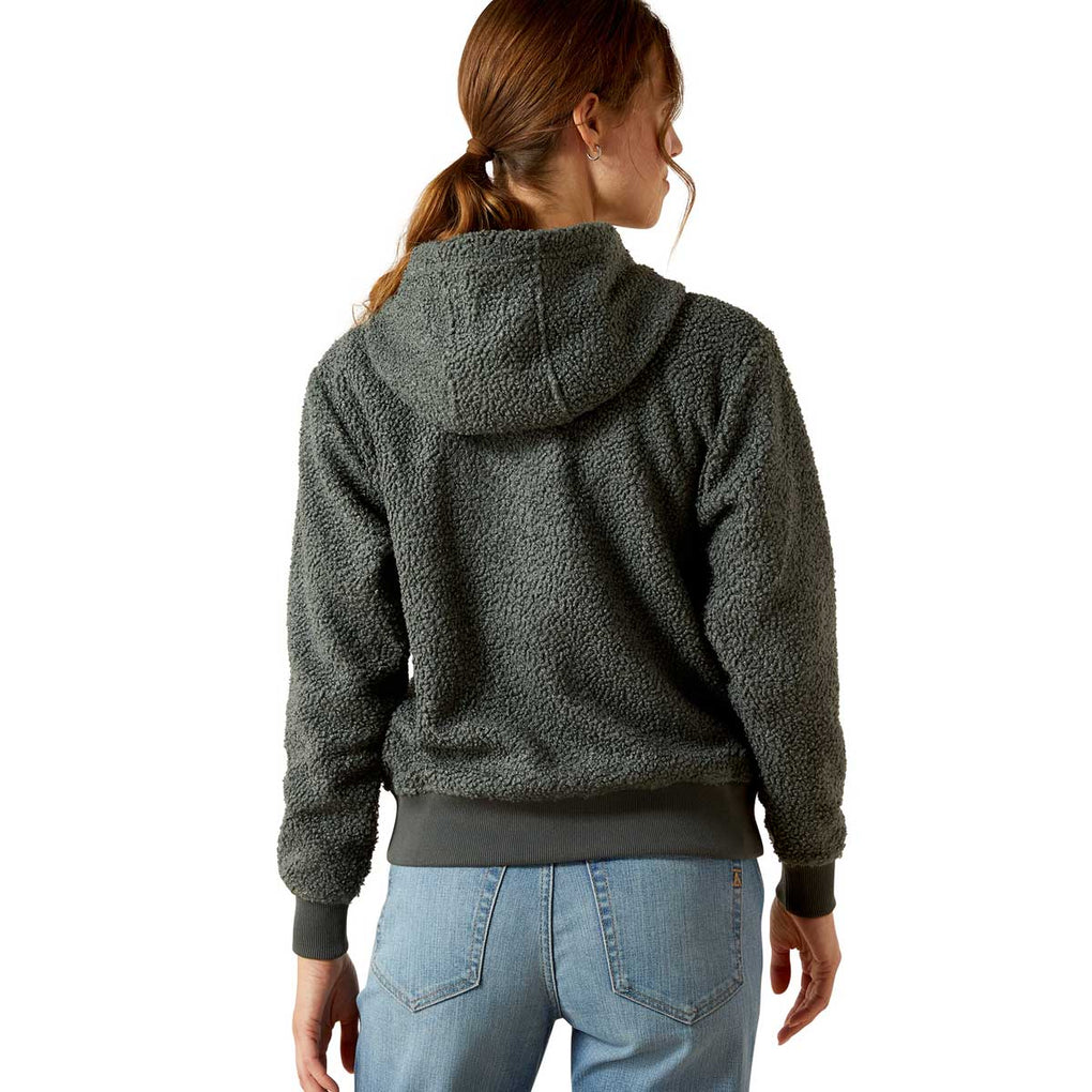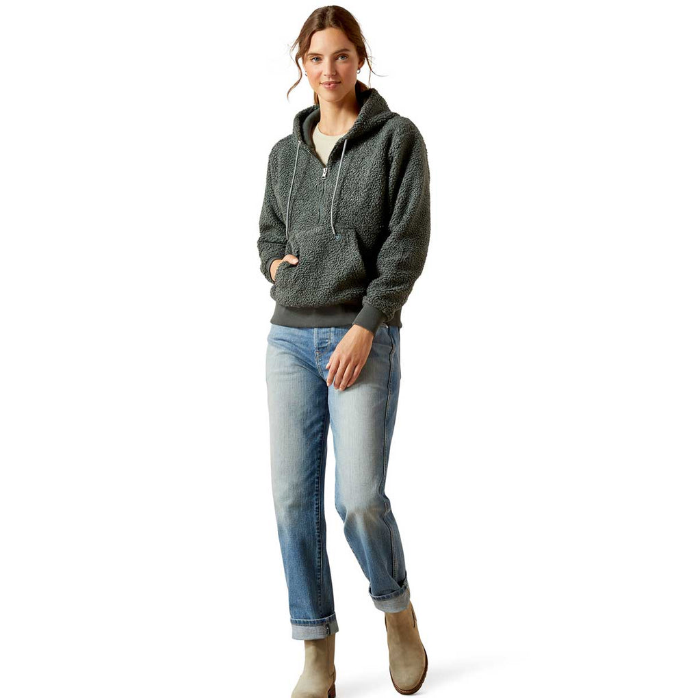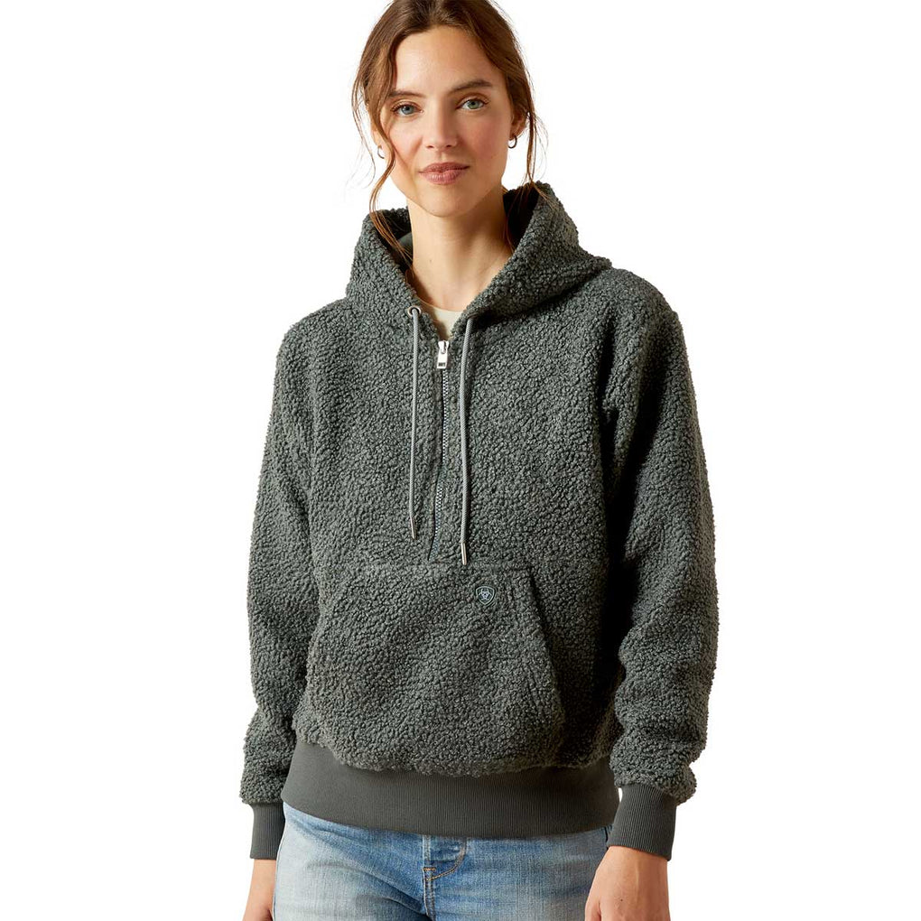 The Ariat Orinda Ladies Hoodie brings cozy texture and clean style together in one barn-to-town essential. Made from 100% recycled poly boucle fleece with a smooth jersey backing, this hoodie offers plush warmth without added bulk. The half-zip neckline and relaxed hood give it a modern, easygoing feel that layers effortlessly over tees or under jackets. Whether you're getting comfortable after a ride or heading out on a chilly morning, the Orinda delivers laid-back comfort with elevated equestrian appeal.