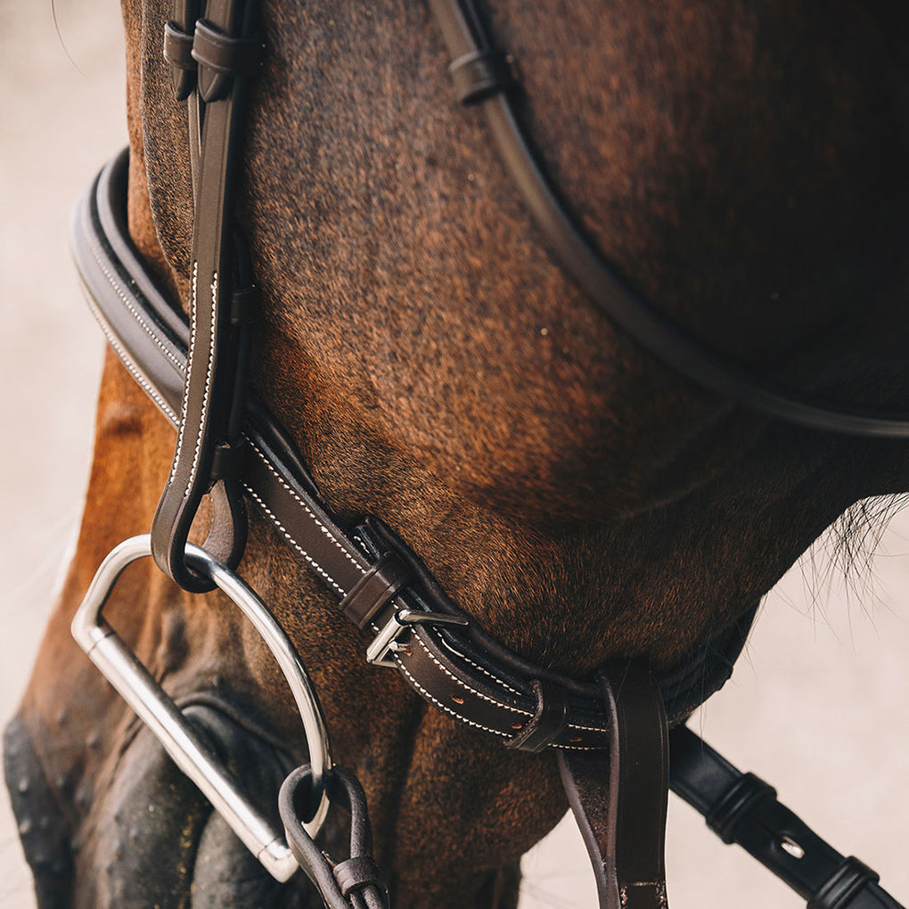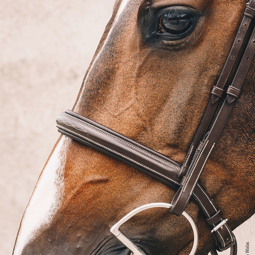 - Curved browband with stitching