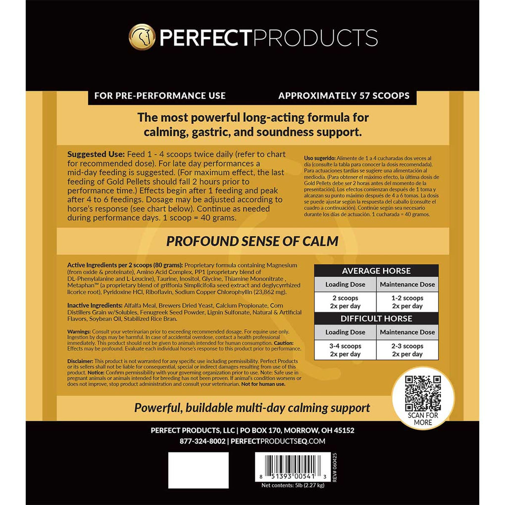 Perfect Prep Gold Pellets - Same great formula as the paste but in easy to feed pellets! Uses natural ingredients that are known to create sustained relaxation and focus during stressful conditions. This unique formula offers the horseman the option of creating a quieter, more focused horse for extended periods of time, using only safe and ethical ingredients.
