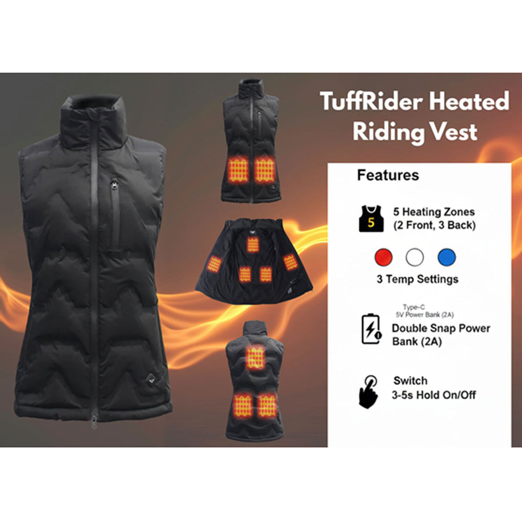 The TuffRider Heated Riding Vest is the ultimate layering piece for riders seeking reliable warmth and comfort in cooler weather. This vest features five heating zones on the abdomen and back that delivers targeted warmth where riders need it most. The adjustable temperature control offers three settings with built-in overheat protection to keep you safe while staying cozy in chilly conditions. With features like the heating system and multiple pockets this vest offers practical storage for essentials while keeping you warm making cold-weather rides and barn work more enjoyable.