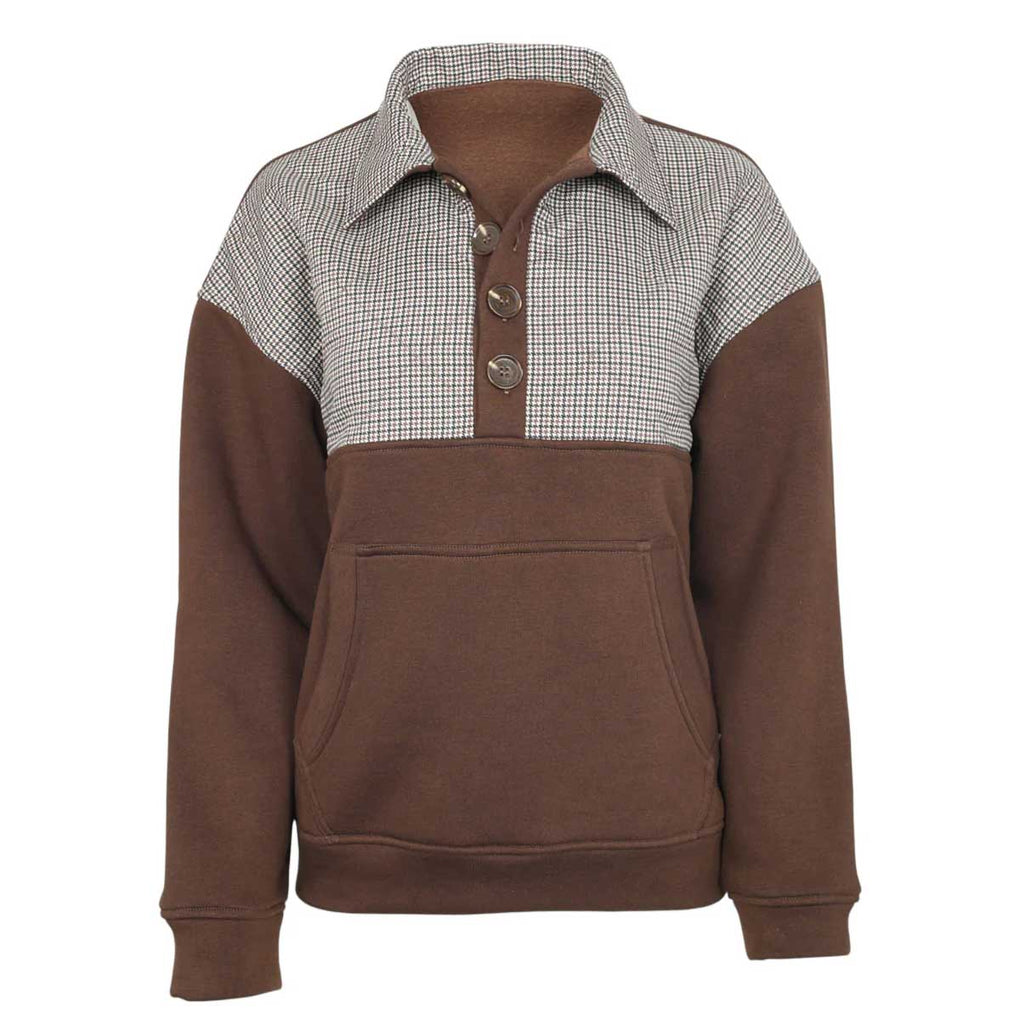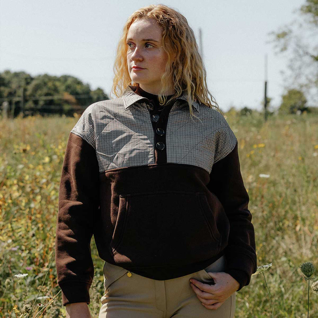 The Dapplebay Heirloom Half Zip Pullover is a chic blend of equestrian tradition and modern comfort. This standout piece combines cozy warmth with its oversized fit to deliver a relaxed vintage-inspired silhouette perfect for layering at the barn or beyond. The houndstooth details and chunky buttons add playful sophistication making this pullover as unique as it is snuggly. This warm and effortlessly stylish layer elevates your barn wardrobe with equestrian charm and modern ease.