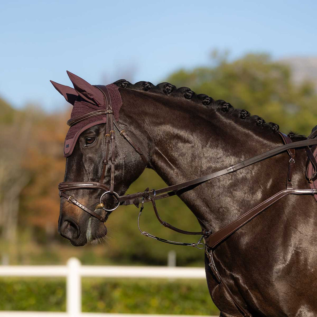 The LeMieux Essence Fly Hood in Damson blends sleek performance with a refined silhouette for modern jumpers and dressage riders. Featuring a sporty cut and expertly hand crocheted construction to offer lightweight coverage and a secure fit under the bridle. A soft-shell patch and matte silicone LeMieux branding add a subtle modern finish that pairs perfectly with the matching Essence saddle pad collection.
