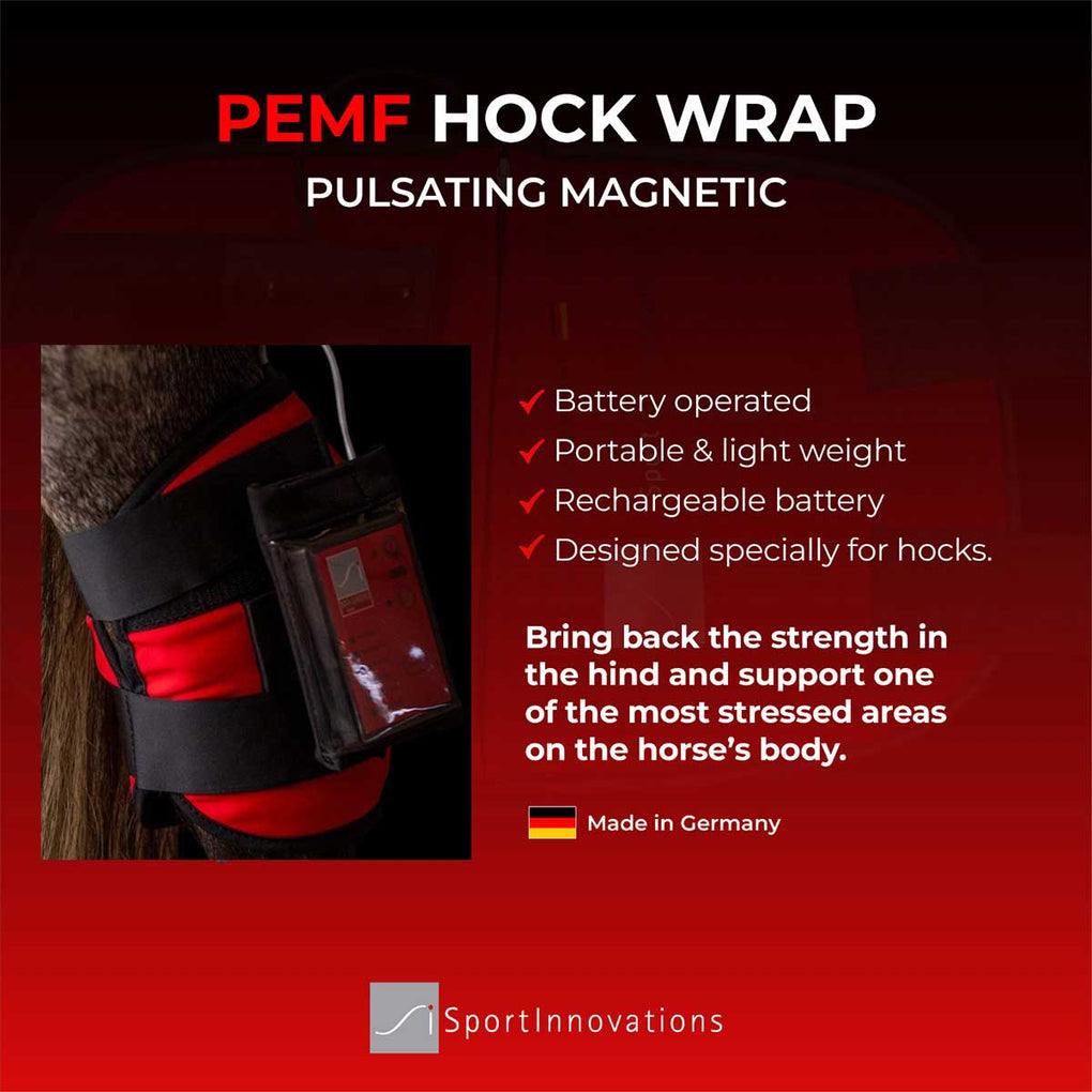 Sport Innovation MagMini Hock Wraps uses PEMF to optimize circulation while also strengthening and improving automatic nerves, building new cells and rejuvenation tissue and helps with the overall function of the internal organs. The Sport Innovation PEMF Hock wrap are battery operated, portable, light weight and rechargeable. The magnetic waves, when in contact with the blood supply, causes the magnetic flux in the blood supply to increase the number of red corpuscles and strengthens arteries. the movement of blood is then accelerated.