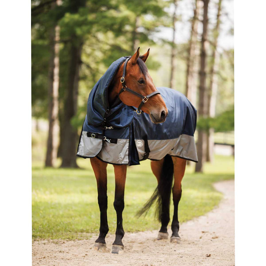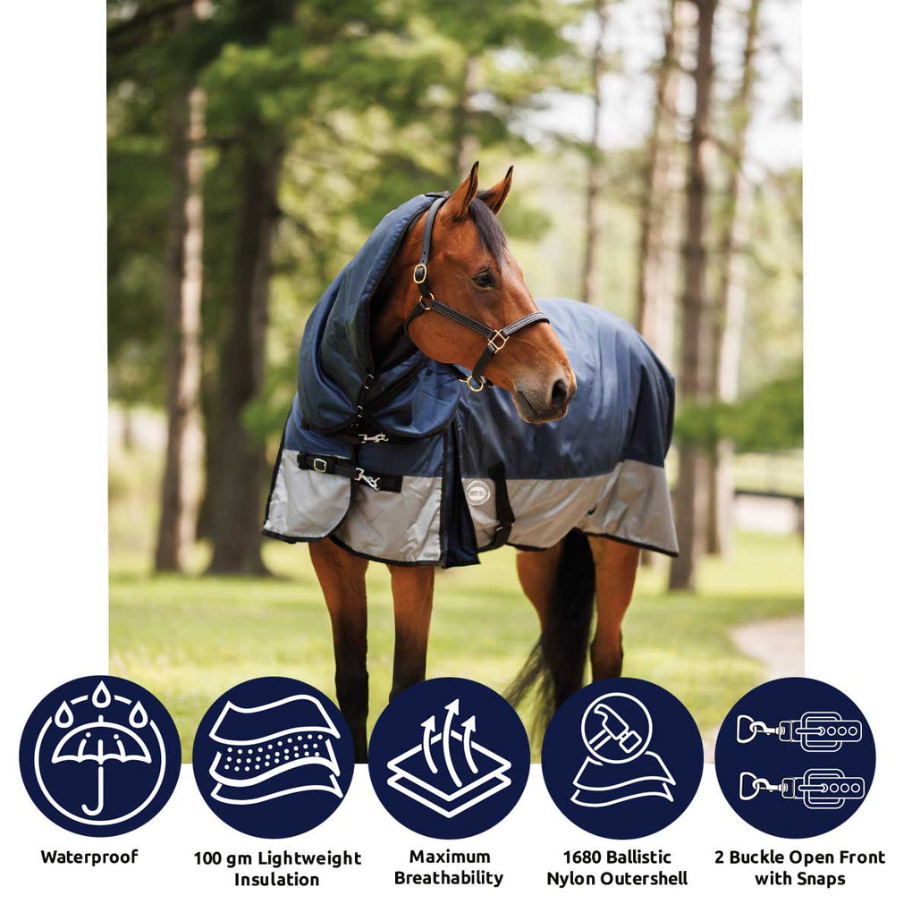 Perfect for horses needing lightweight weather protection with full neck coverage.