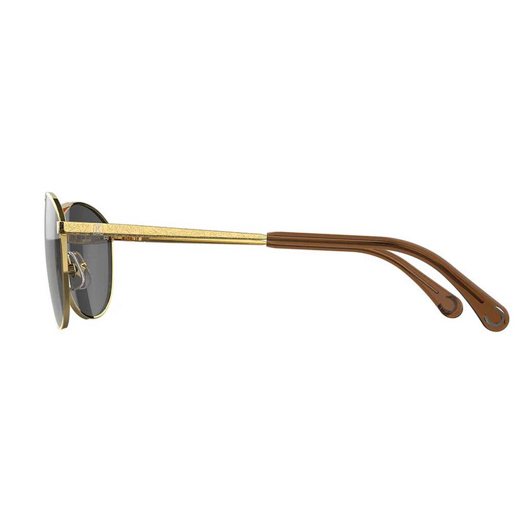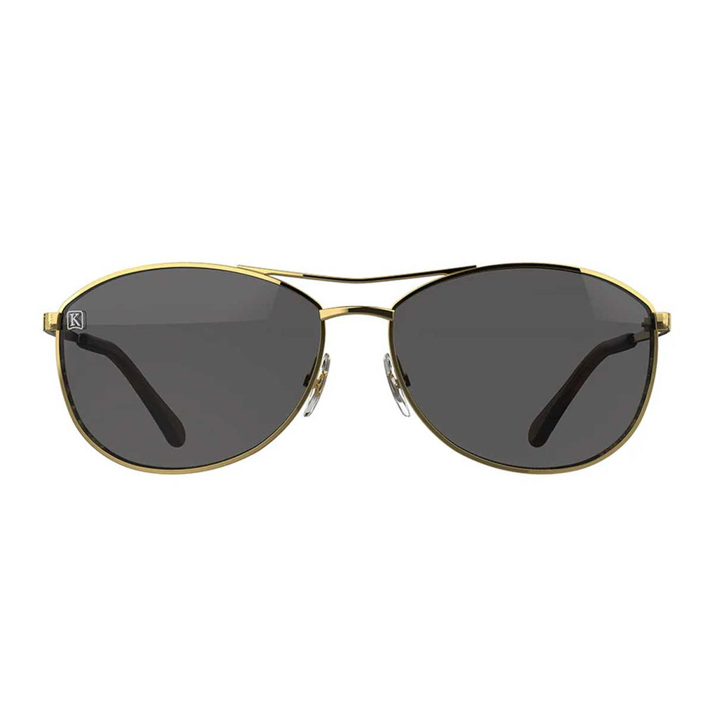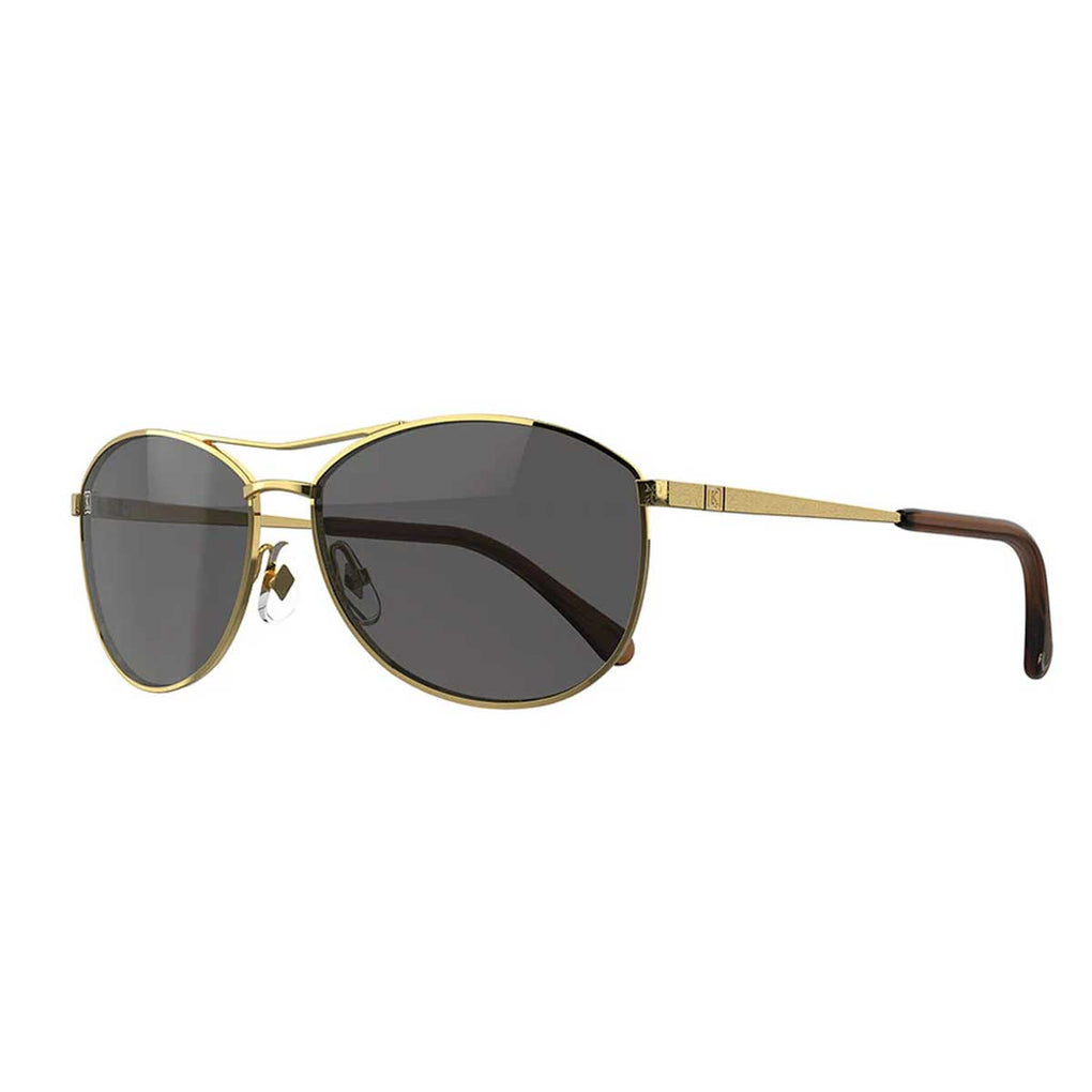 - Gold features a gold metal frame with polarized black lenses designed for bright light (11% VLT)