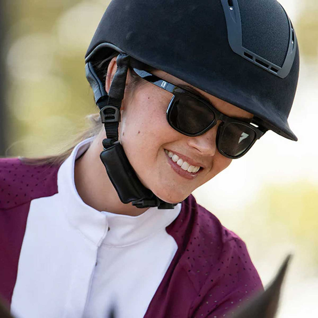 Built for smaller and narrower faces, the Kroop's Ocala XS Polarized Riding Sunglasses deliver all the protection and clarity of the original Ocala in a more tailored fit. Engineered with ANSI Z87.1 impact-rated lenses and durable TR90 frames, these sunglasses offer certified safety for riding and outdoor performance. Available in Midnight with a black frame and polarized black lenses or Espresso with a brown frame and polarized black lenses, the Ocala XS combines proven protection and lightweight comfort for all-day wear in the saddle or on the trail.