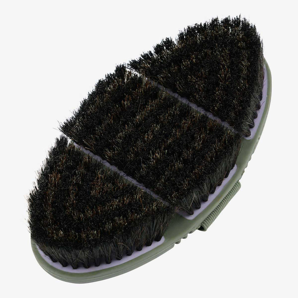 Preferred by professional grooms, the LeMieux Flexi Horse Hair Body Brush features natural horsehair bristles to remove stubborn dirt and bring out a healthy shine in your horse’s coat. Its flexible body contours to reach nearly every part of the horse with ease. The ergonomic shape reduces wrist strain, while the elasticated strap ensures a secure and comfortable fit during every grooming session.