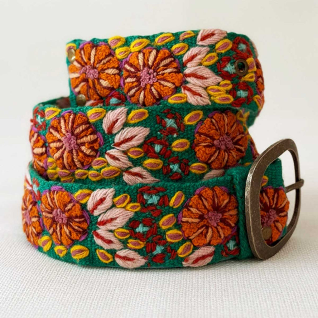 Bring a touch of artisan craftsmanship and bold seasonal color to your wardrobe with this distinctive embroidered belt.