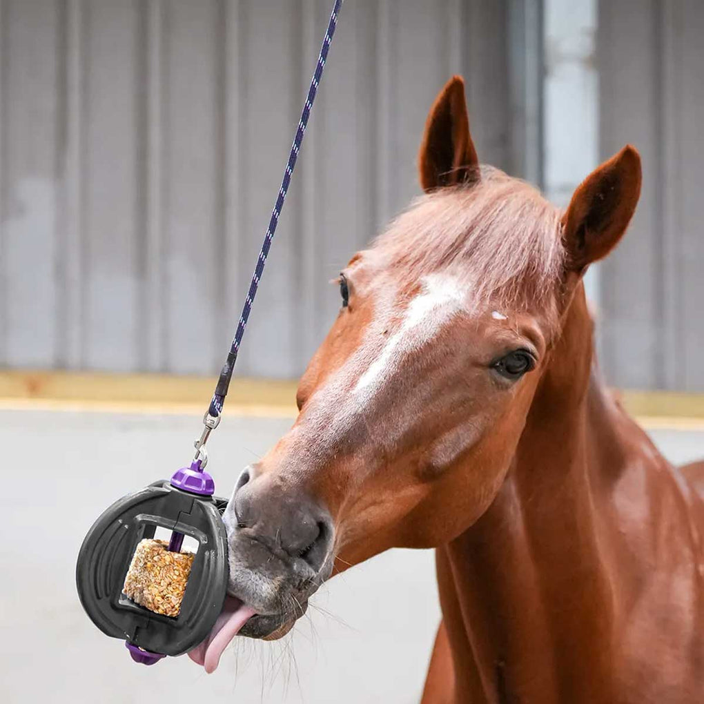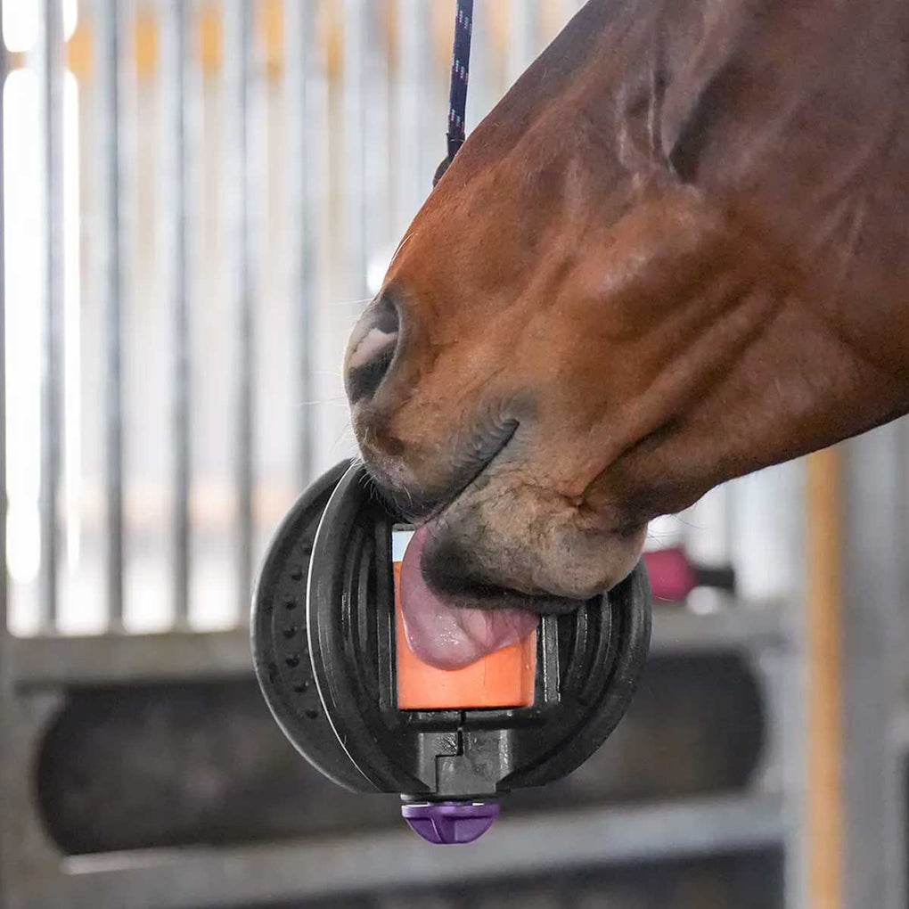 The Likit Bizzy Ball is a versatile, engaging toy designed to help keep your horse mentally stimulated and entertained in the stall or paddock. It's unique, patented wing-shaped design offers multiple play options-hang it, place it on the ground, or use it as a teether. Add a Likit, Granola, or Rock Salt Refill (sold separately) to extend playtime and encourage natural licking and chewing behaviors. Ideal for reducing stall boredom, the Bizzy Ball is a smart addition to your horse's daily environment.