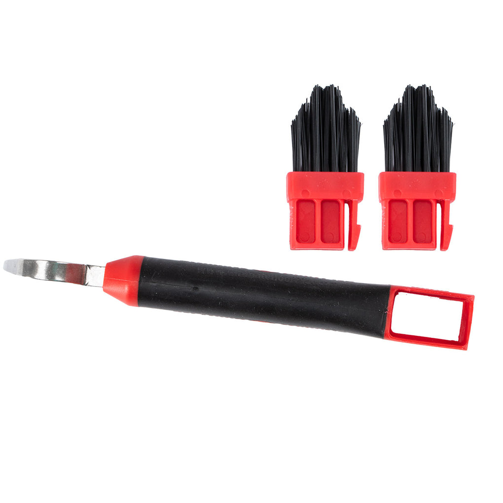 The Ultimate Hoofpick with Detachable Brush is the most heavy duty combo pick on the market that is built to last. Durable chisel-end steel pick removes even the hardest packed mud or snow with ease. Ergonomic design for a comfortable grip. Replaceable brush efficiently cleans along the frog and crevices for a superbly clean hoof. One replacement brush included, additional brushes sold separately. Lifetime replacement guarantee from bending or breaking.