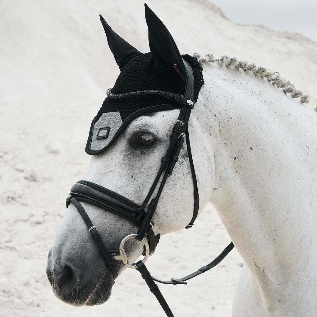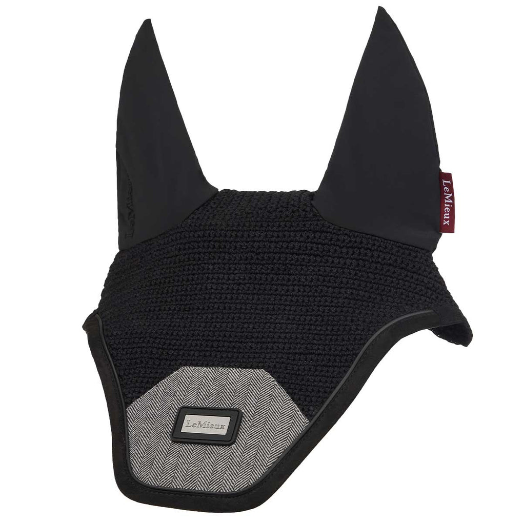 The LeMieux Aspen Fly Hood in Herringbone combines elegant style with premium comfort for a polished look. Hand-crocheted in a sophisticated weave knit to provide lightweight protection from flies and distractions while maintaining a refined aesthetic. The soft stretch ears offer a quiet and comfortable fit for sensitive horses. The coordinated feature patch detailing and gunmetal LeMieux badge pair perfectly with matching Aspen Herringbone saddle pads for a complete show-ring finish.