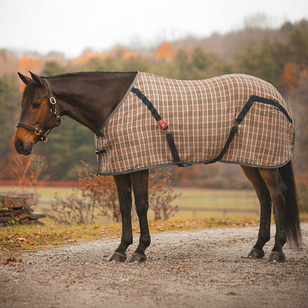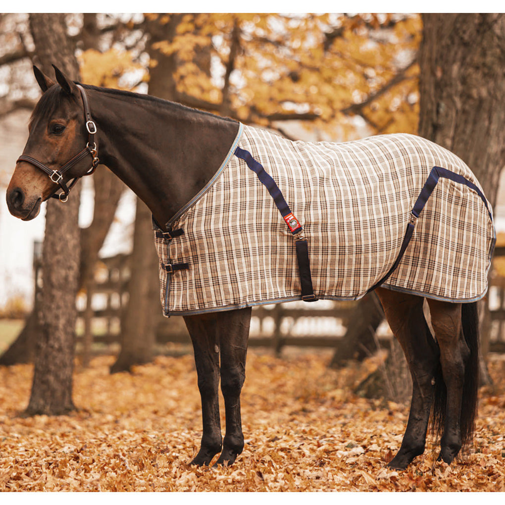 The 5/A Baker Stable sheet is made with the same great features as the original Baker Blanket but using a lighter weight, single ply woven acrylic fabric. The original Baker stable sheet is great for warmer nights or keeping your horse clean at shows. With open front closures for adjustability, contour cut styling and bias surcingles to keep in place, this sheet is perfect for traveling as well.
