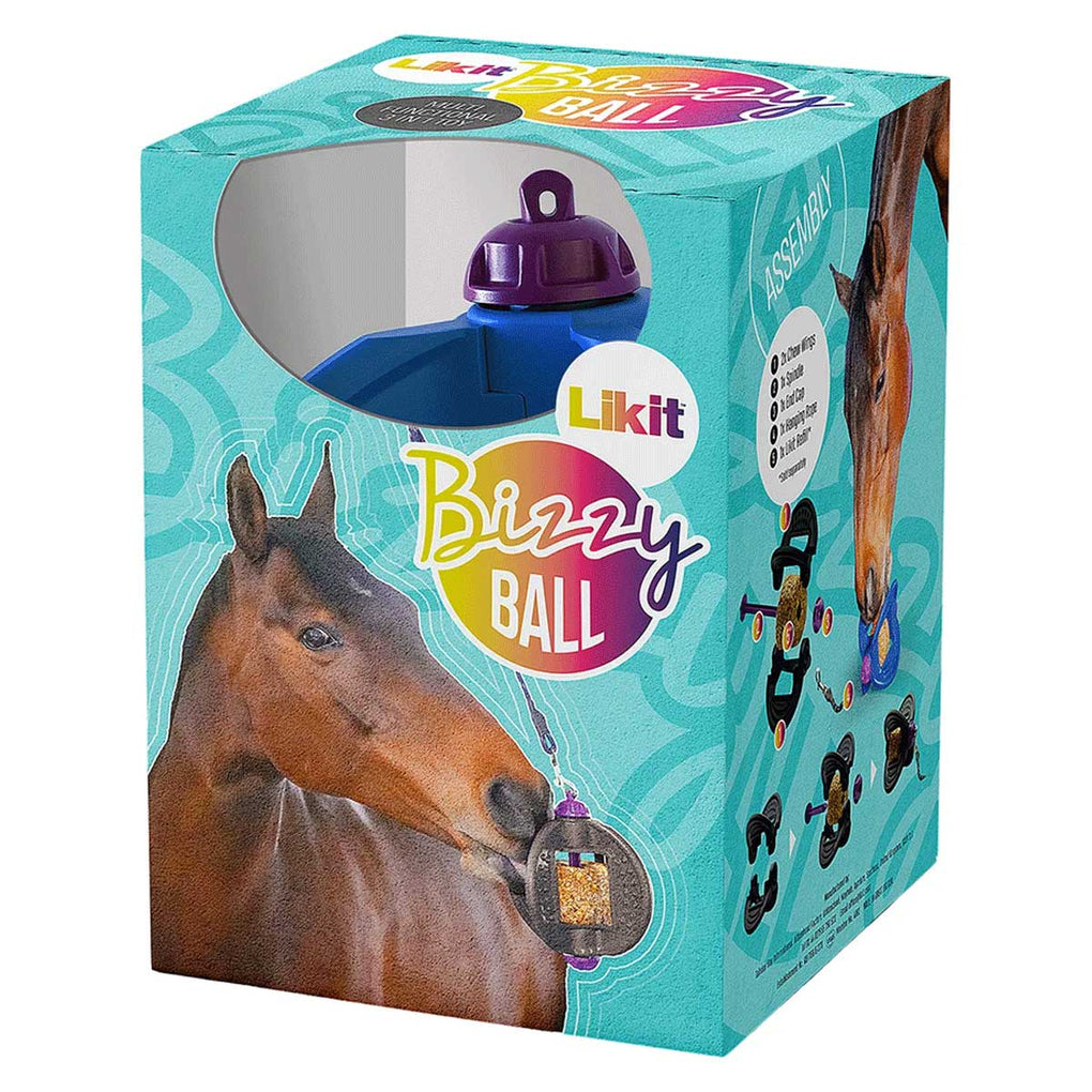 The Likit Bizzy Ball is a versatile, engaging toy designed to help keep your horse mentally stimulated and entertained in the stall or paddock. It's unique, patented wing-shaped design offers multiple play options-hang it, place it on the ground, or use it as a teether. Add a Likit, Granola, or Rock Salt Refill (sold separately) to extend playtime and encourage natural licking and chewing behaviors. Ideal for reducing stall boredom, the Bizzy Ball is a smart addition to your horse's daily environment.