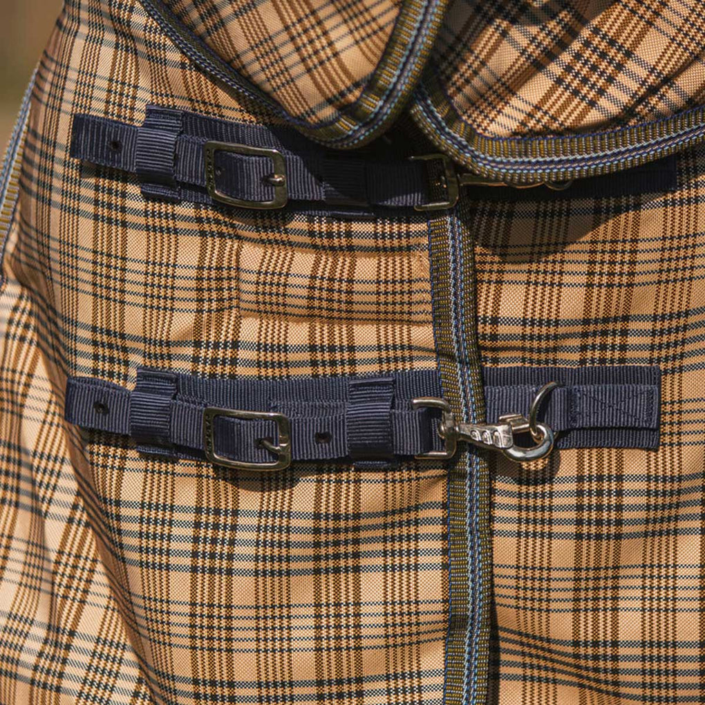 The 5/A Baker Extreme Turnout Blanket is made for the extreme cold and features 555 grams of polyfill making it one of the warmest turnout blankets available. Durable with 2100 denier polyester rip stop outershell, while still polishing the coat with a satin smooth inner lining. Waterproof and breathable allows your horse to stay dry and comfortable in the extreme cold weather. Baker Extreme Turnout blanket has the signature Baker plaid and red tag. Featuring shoulder gussets for freedom of movement, belly surcingles to help keep blanket in place, elastic hind leg straps and a tail flap. Matching neck cover sold separately.