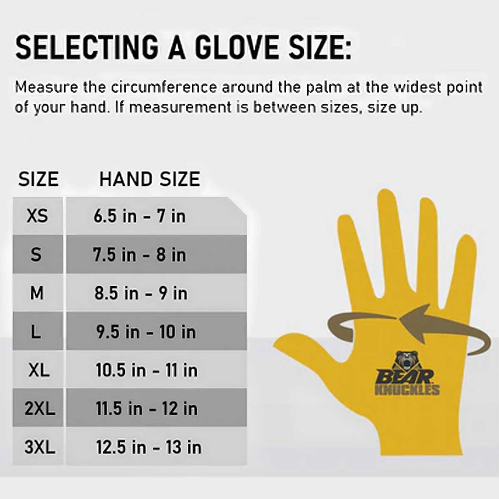 First time use: To achieve perfect fit Bear Knuckles leather gloves should conform tightly to your hands when wearing for the first time as leather will stretch. You will need to put leather gloves on, spritz with water and wear until dry the gloves are dry.